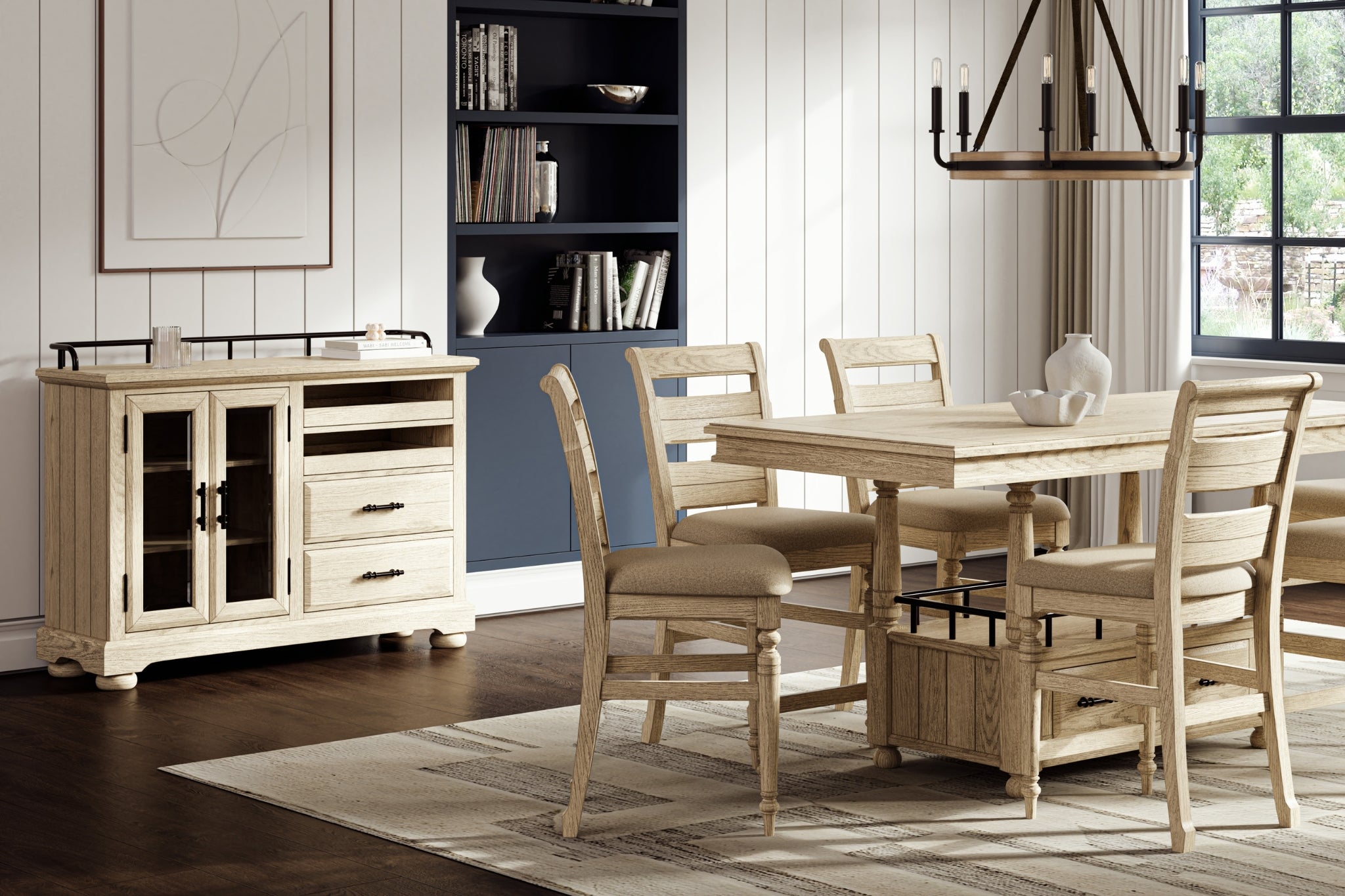The Whitewash finish brings airy charm and relaxed elegance to every bedroom and dining space.