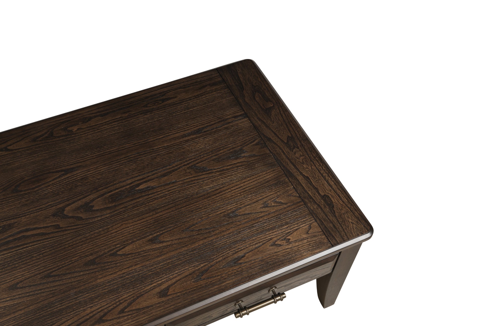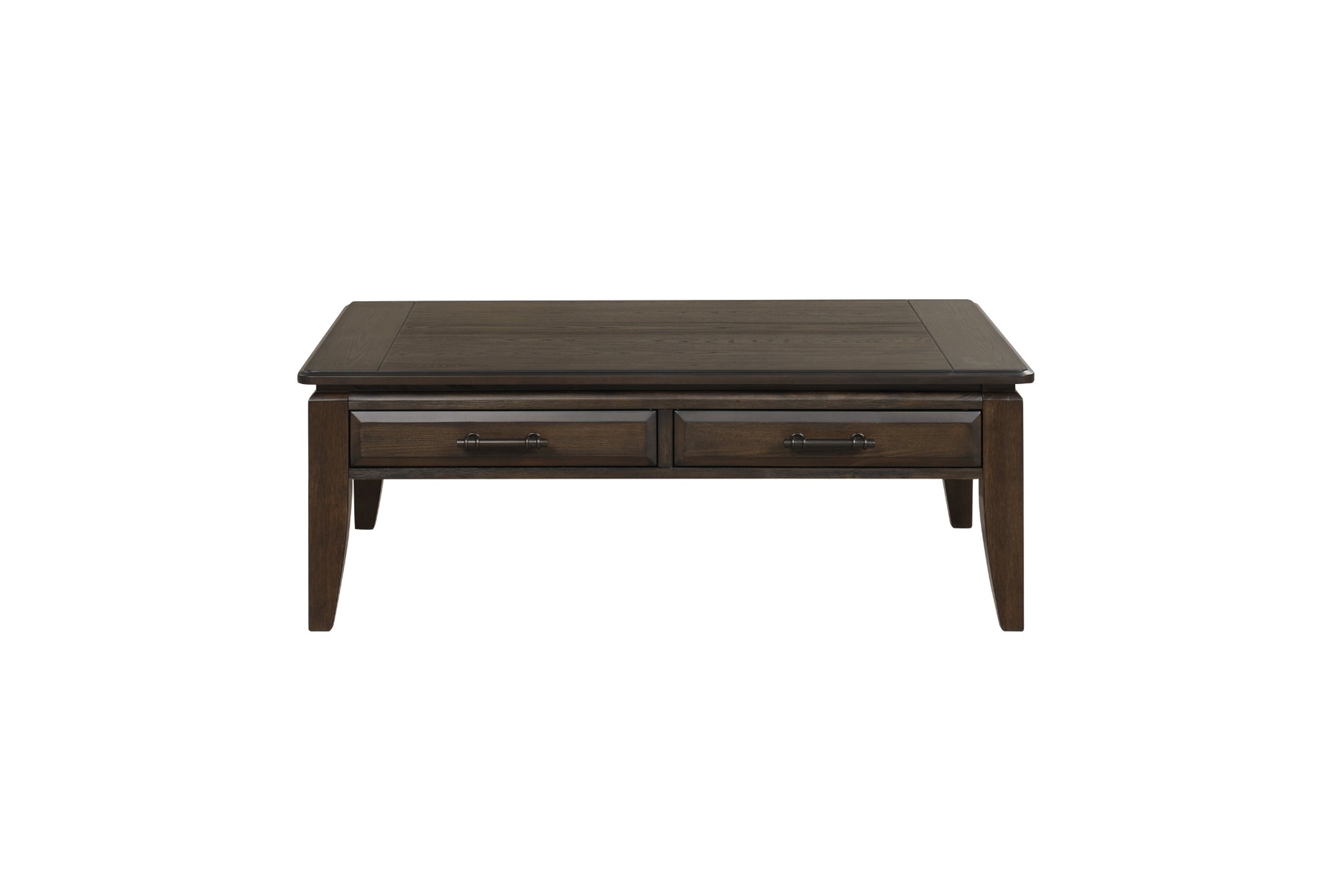 The Bellamy Lane Cocktail Table offers a perfect blend of style and functionality with its rich, dark wood finish and classic design. Featuring two spacious drawers, this table provides ample storage for remotes, magazines, or other living room essentials, keeping your space organized and clutter-free. The wide tabletop is ideal for displaying décor, serving trays, or enjoying a cup of coffee. Its sturdy construction and elegant tapered legs make it a versatile centerpiece for any living room.