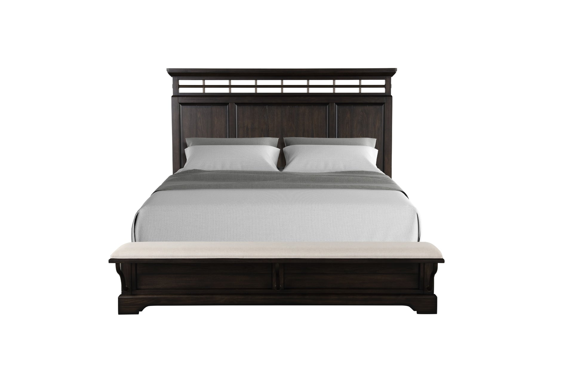 The Bellamy Lane Panel Bed with Bench brings sophisticated charm to your bedroom. Featuring a beautifully paneled headboard with a sleek grid-like detail, this bed adds a touch of contemporary elegance to any space. The built-in bench at the foot of the bed offers a convenient seating option, ideal for relaxation or getting ready for the day. Crafted from rich, dark wood, this bed is available in both queen and king sizes, making it a versatile choice for a variety of bedroom layouts. The Bellamy Lane Panel Bed with Bench is the perfect blend of comfort and modern design.