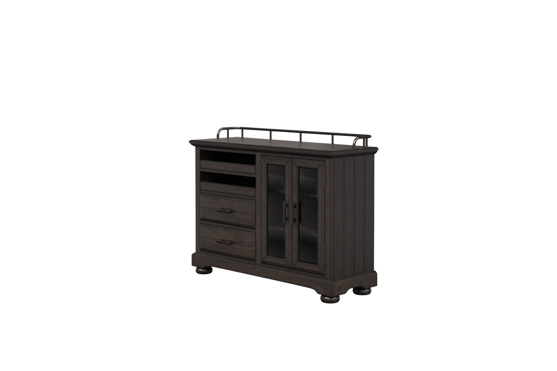 The Bellamy Lane Dining Room Server combines elegant design with practical storage, making it a functional and stylish addition to your dining area. Crafted with a rich, dark wood finish, this server features spacious cabinets and drawers, offering ample room to store dining essentials like tableware, linens, or serveware. The wide top surface is perfect for serving meals or displaying decorative items, adding versatility to your space. With its classic detailing and sturdy construction, this piece enhances both the look and functionality of any dining room. The Bellamy Lane Dining Room Server is perfect for hosting and keeping your space organized with timeless charm.